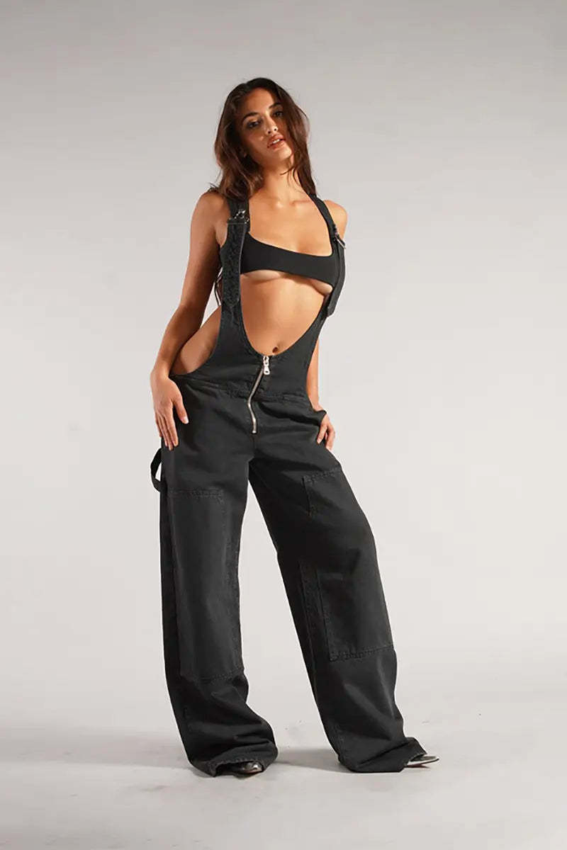Stay effortlessly stylish this fall with these loose-fit denim overalls. Featuring a zipper-front detail, wide-leg silhouette, and functional pockets, these overalls provide a perfect blend of comfort and practicality. Adjustable straps ensure a customizable fit, making them a versatile addition to your casual wardrobe.